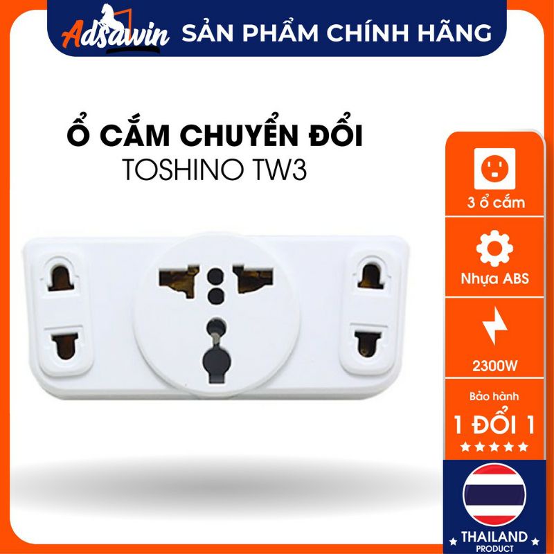 Phích cắm (Ổ cắm) TOSHINO CO6S-A THAILAND chuyển đổi 3 chấu sang 2 chấu,công tắc tiện lợi,2000W,ABS Chống cháy.*Phích cắm (Ổ cắm) Chất liệu nhựa ABS cao cấp chống cháy,lõi đồng nguyên chất 100%