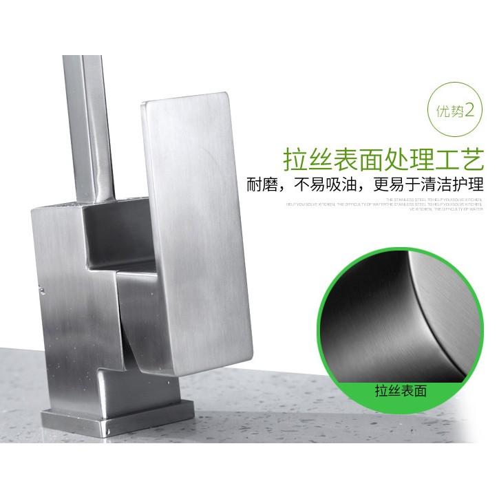 Nhà cửa & Đời sống > Dụng cụ & Thiết bị tiện ích > Chậu rửa & vòi nước || Vòi rửa bát vuông Inox 304 cao cấp VRB14 tặng đôi dây cấp nước inoxCòn hàng