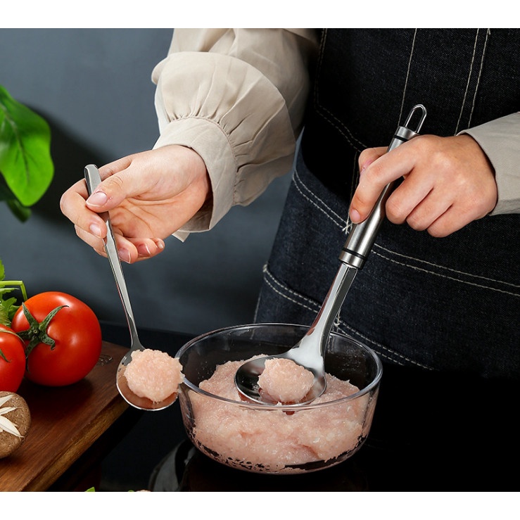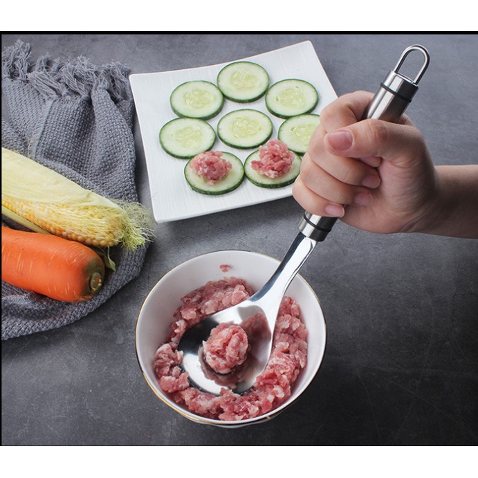 ĐẶC ĐIỂM NỔI BẬT♘ THÌA LÀM MỌC, Thịt, Cá Viên 100% Inox 304 Loại 1 Cao Cấp, Thần Thánh giúp tạo hình chả viên không mất công nặn.