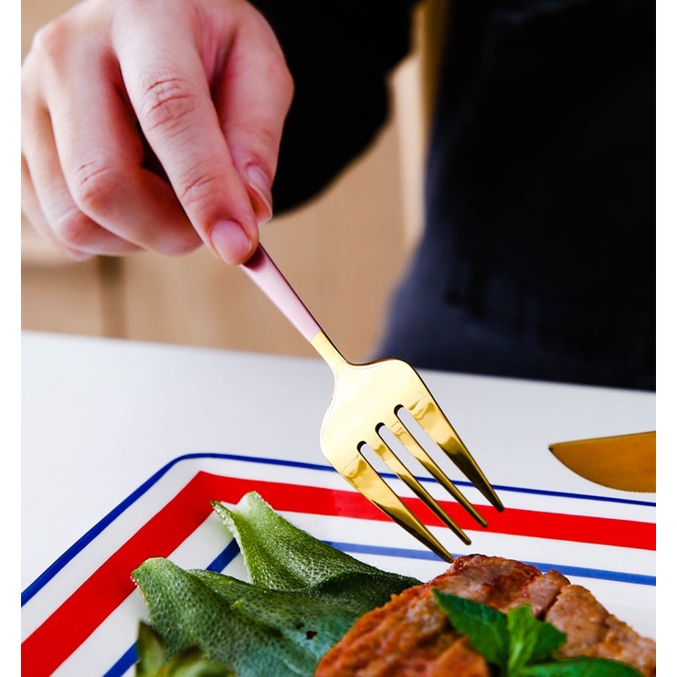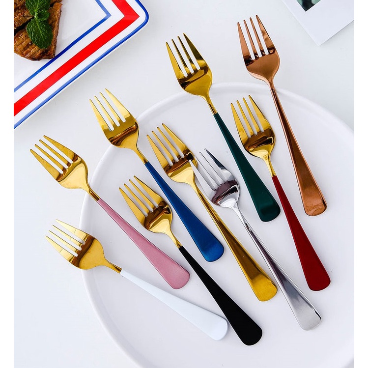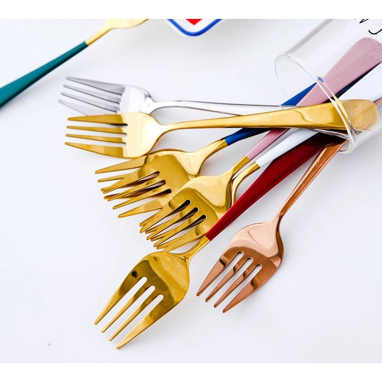 Nhà cửa & Đời sống > Bộ đồ bàn ăn > Dĩa || Dĩa Inox 304 mạ vàng ăn hoa quả, bít tết phong cách Châu sang trọng caoCòn hàng