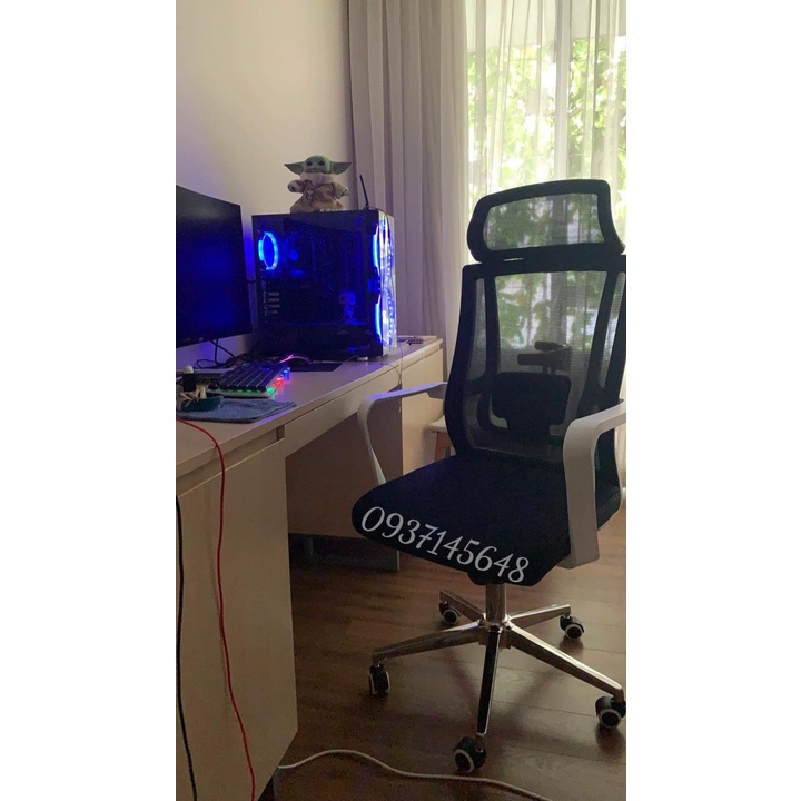 Nhà cửa & Đời sống > Nội thất > Ghế, ghế dài, ghế đẩu || Ghế văn phòng chân xoay khung trắng thép mạ cao cấp có tựa đầu TM025Còn hàng