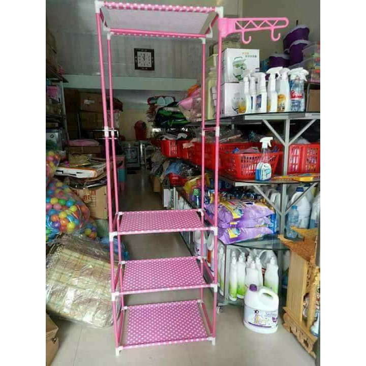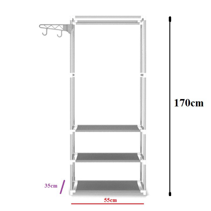- Kệ treo quần áo 4 tầng, 3 ngăn có giá treo đa năng giúp sắp xếp nhiều đồ dùng, quần áo gia đình.