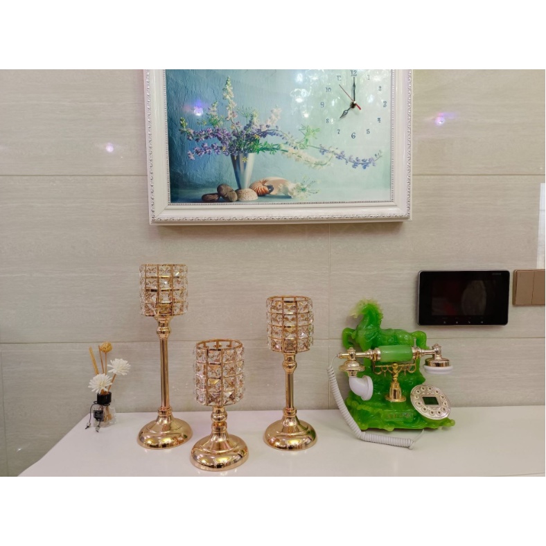 ***Thông tin sản phẩm:✔️ Tên sản phẩm: Chân nến hình trụ đính đá pha lê sang chảnh thích hợp trang trí, decor hàng có sẵn