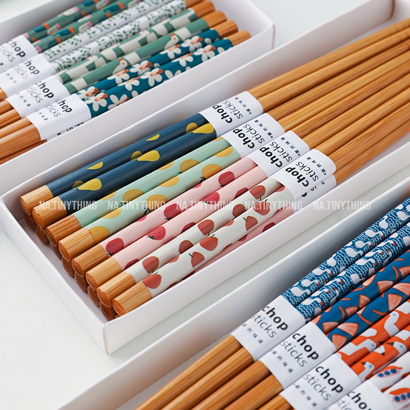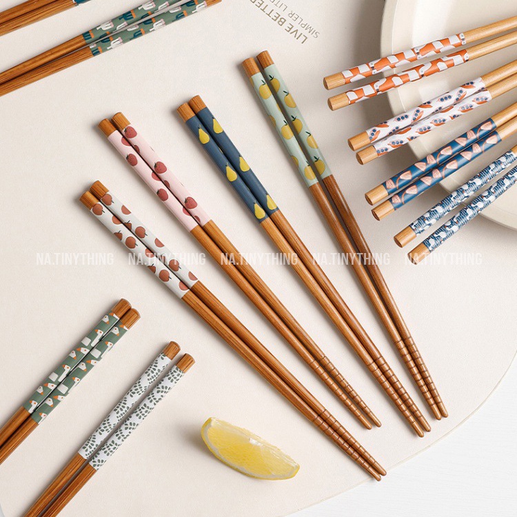 Nhà cửa & Đời sống > Bộ đồ bàn ăn > Bộ dao kéo || Bộ 8 đôi đũa gỗ tre tự nhiên Nhật Bản hoạ tiết Vintage - NA0058Còn hàng