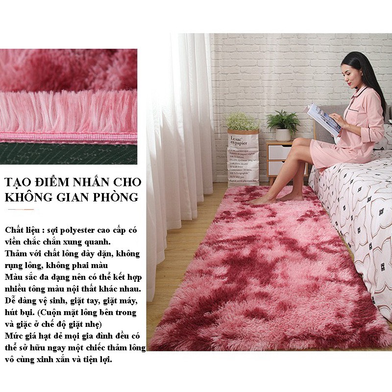 - Thảm với chất lông dày dặn, không rụng lông, không phai màu