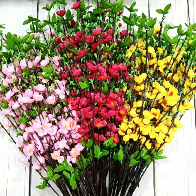 Nhà cửa & Đời sống > Trang trí nhà cửa > Hoa trang trí || Cành Hoa mai đào 5 nhánh - cành đào giảCòn hàng