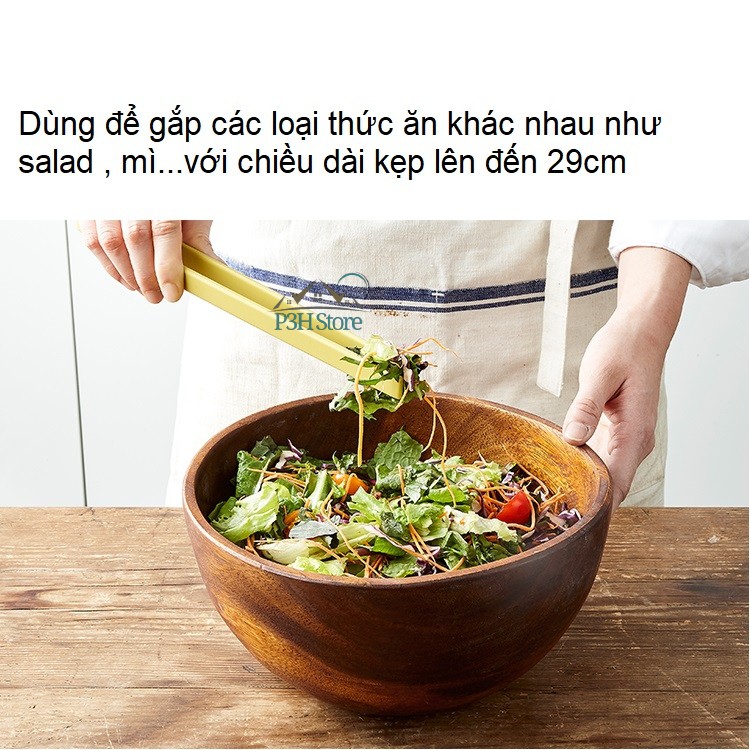 - Tay cầm dài được thiết kế với lớp phủ silicon ở bên ngoài giúp bạn tránh nóng và không bị ảnh hưởng bởi hơi nóng phả ra từ lò nướng đồng thời giúp chống trơn trượt và cách nhiệt khi cầm trực tiếp vào dụng cụ khi nấu ăn. Thép không gỉ cao cấp cứng giúp thức ăn được kẹp chặt bằng một lực vừa đủ, kể cả thức ăn có kích thước lớn