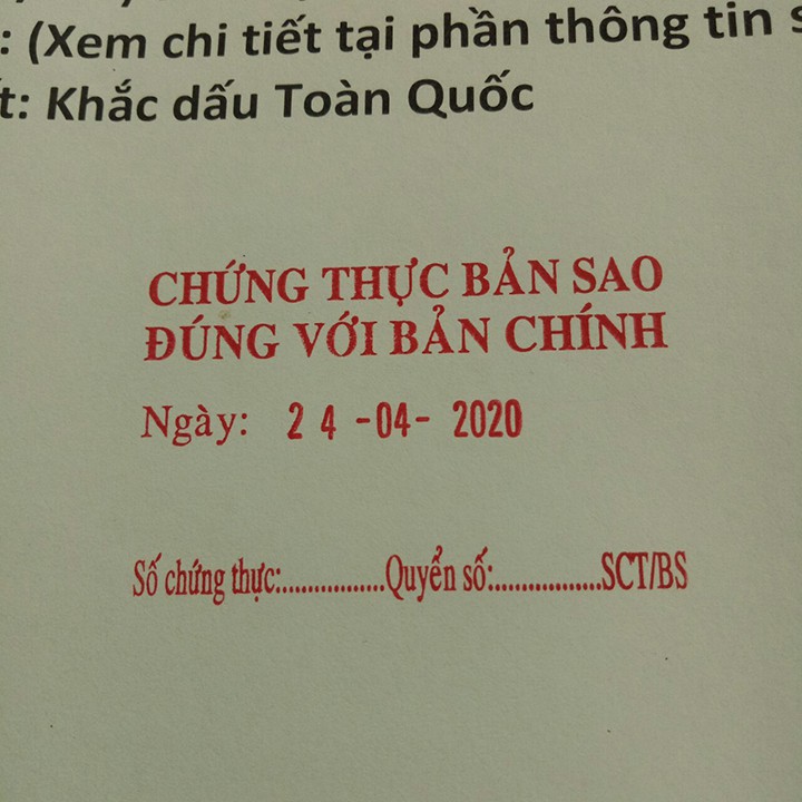 –– 1 x Con dấu chứng thực có ngày tháng năm thay đổi
