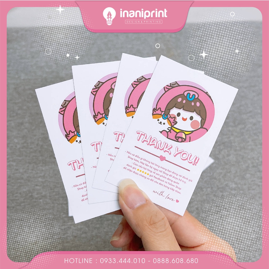 Giới thiệu Card cám ơn cô bé dễ thương giá rẻ - In 1 mặt - Cán màng mờ