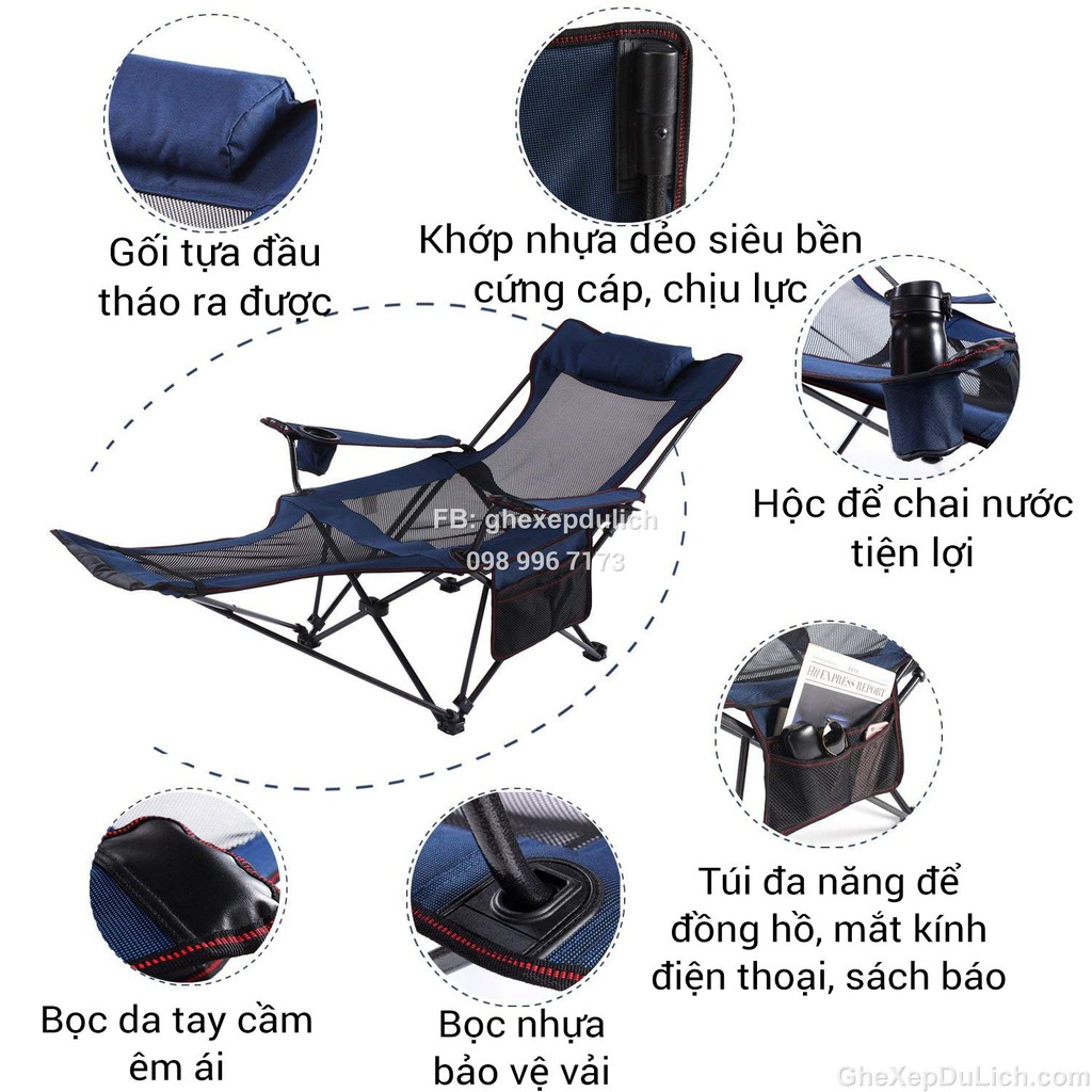 Giới thiệu [BH 5 Năm] Ghế Xếp Nằm Nam Việt Vải Dù Gác Chân Tháo Lắp