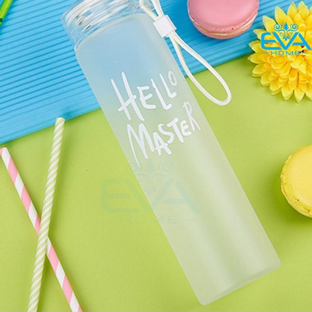 Giới thiệu Bình Nước Thủy Tinh In Chữ Hello Master 480ML có dây xách