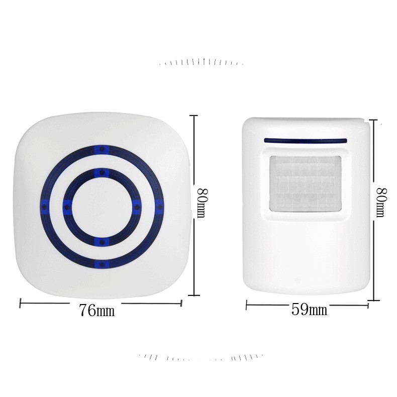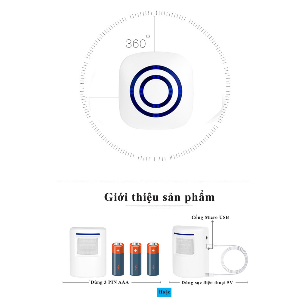 - Bộ phát độc lập với chuông, bộ phát trang bị cảm ứng chuyển động nên chỉ cần có người trong vùng cảm biến của bộ phát thì chuông sẽ kêu, âm báo lên đến 113dB. Có thể dùng nhiều bộ phát ở các vị trí khác nhau với 1 chuông hoặc nhiều chuông với 1 bộ phát, chỉ cần cho học lệnh.
