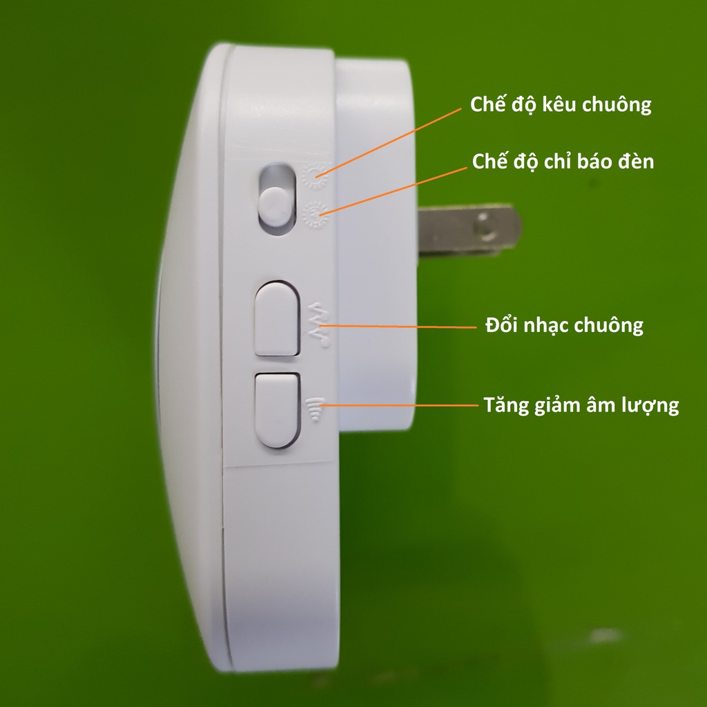 - Chuông không dây có 2 chế độ: Báo khách, báo động.