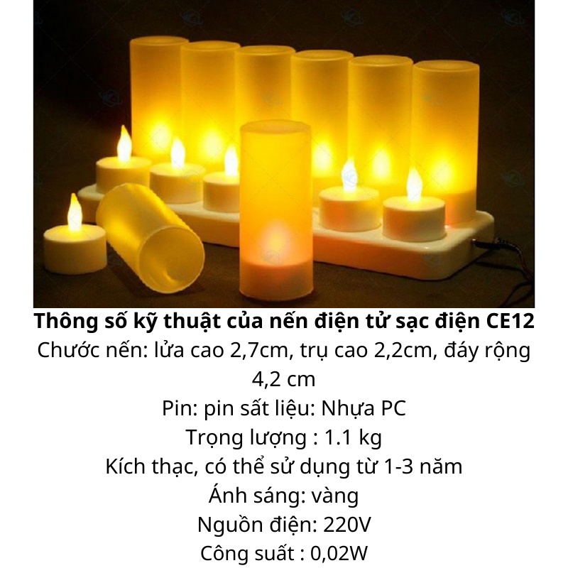 Thông số kỹ thuật của nến điện tử sạc điện CE12