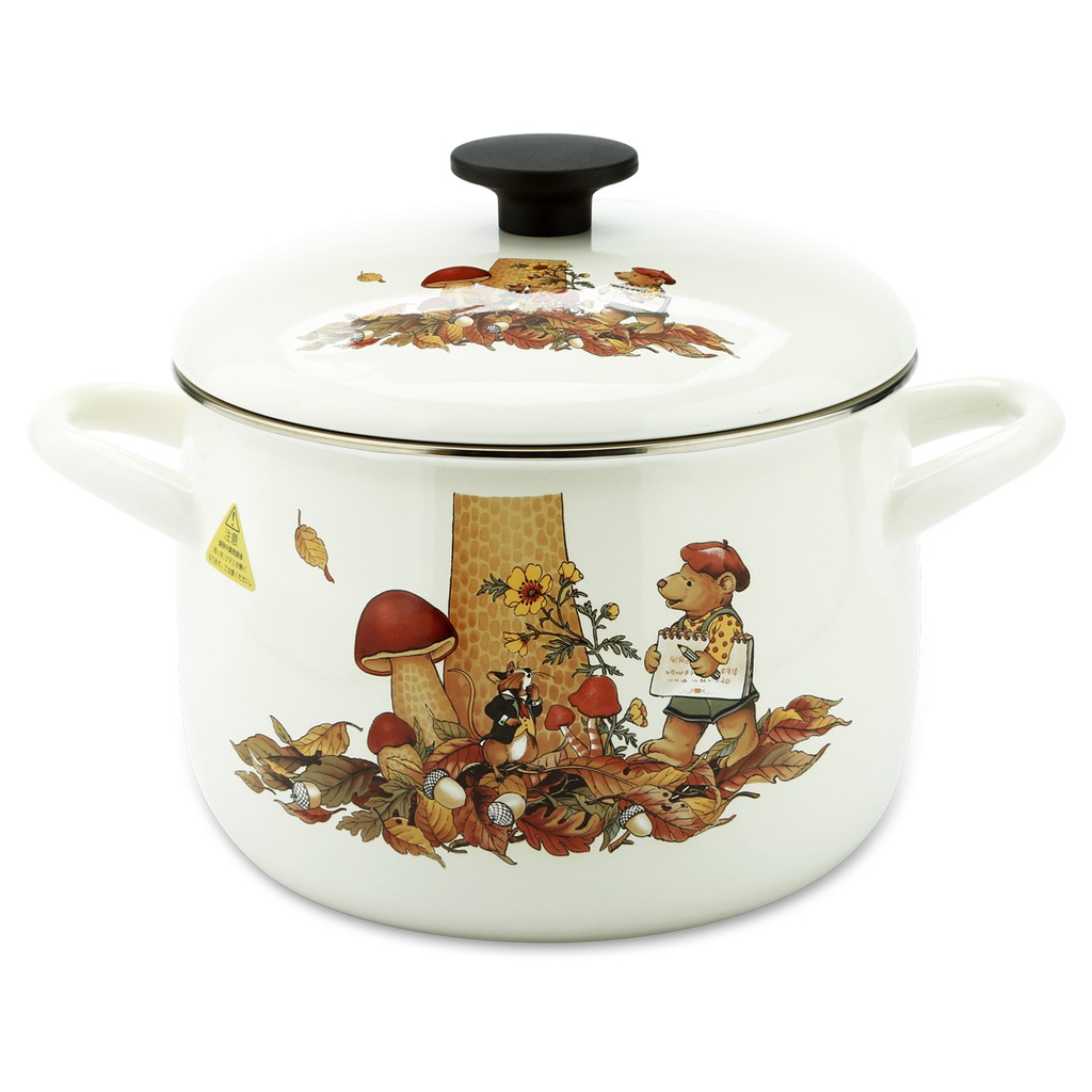 Bộ nồi tráng men bếp từ Fujihoro Nhật Bản cao cấp ( hoa văn con gấu ), nhập khẩu Thái Lan