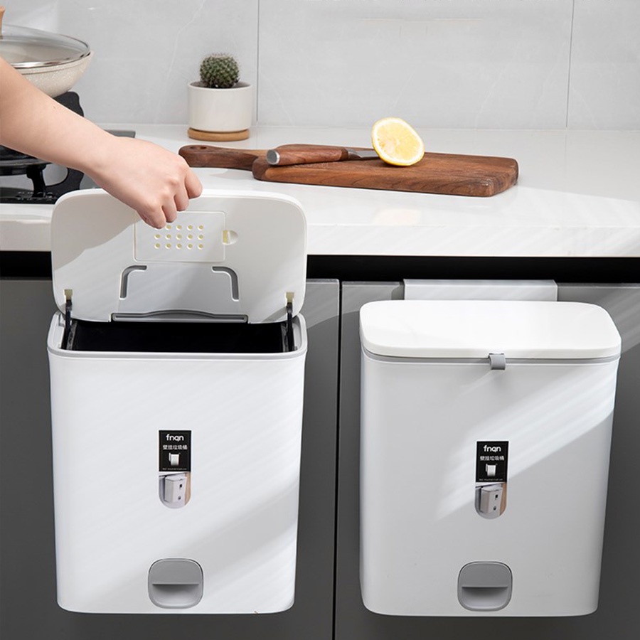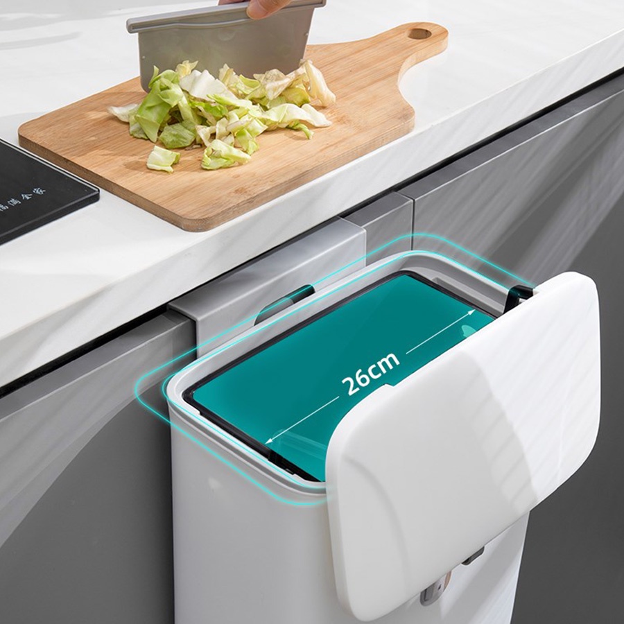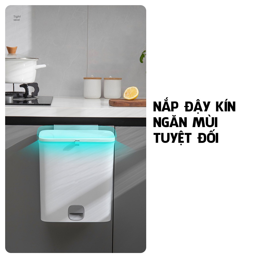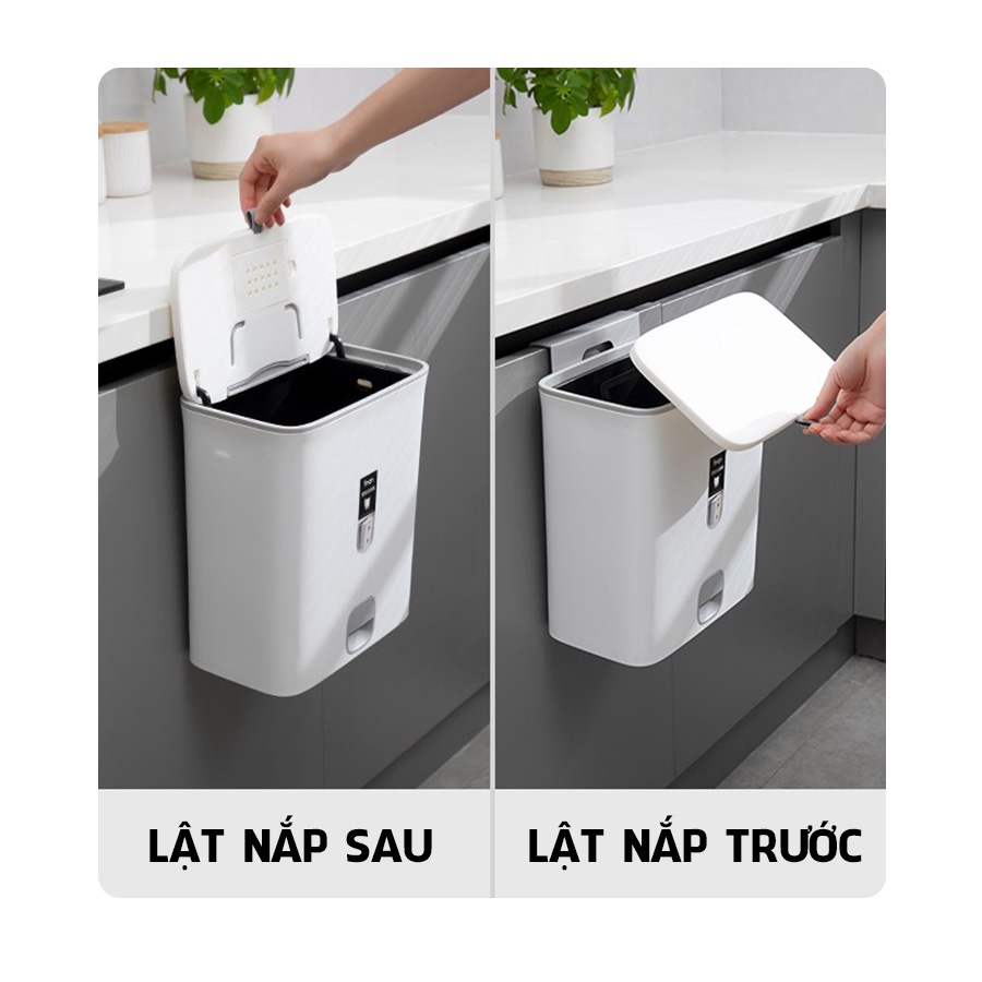 Thùng rác nắp đậy thông minh có lõi treo tủ bếp có ngăn để túi rác mẫu mới 2022 R13