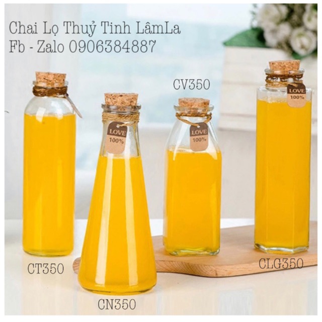 Giới thiệu Chai Thuỷ Tinh Nắp Gỗ Ép 350ml ( CT350 - CT500 - CV350 - CN350 - CLG350 )