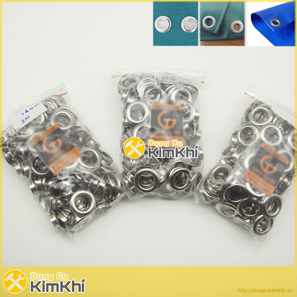 Khoen ore bạc 14mm túi 100 cặp chuyên bấm bạt, mắt cáo