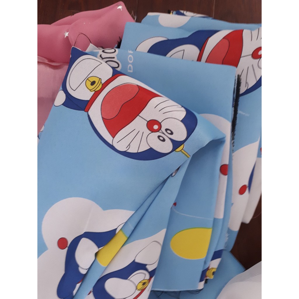 Rèm vải treo cửa chắn sáng họa tiết đô rê mon (nhiều kích thước)