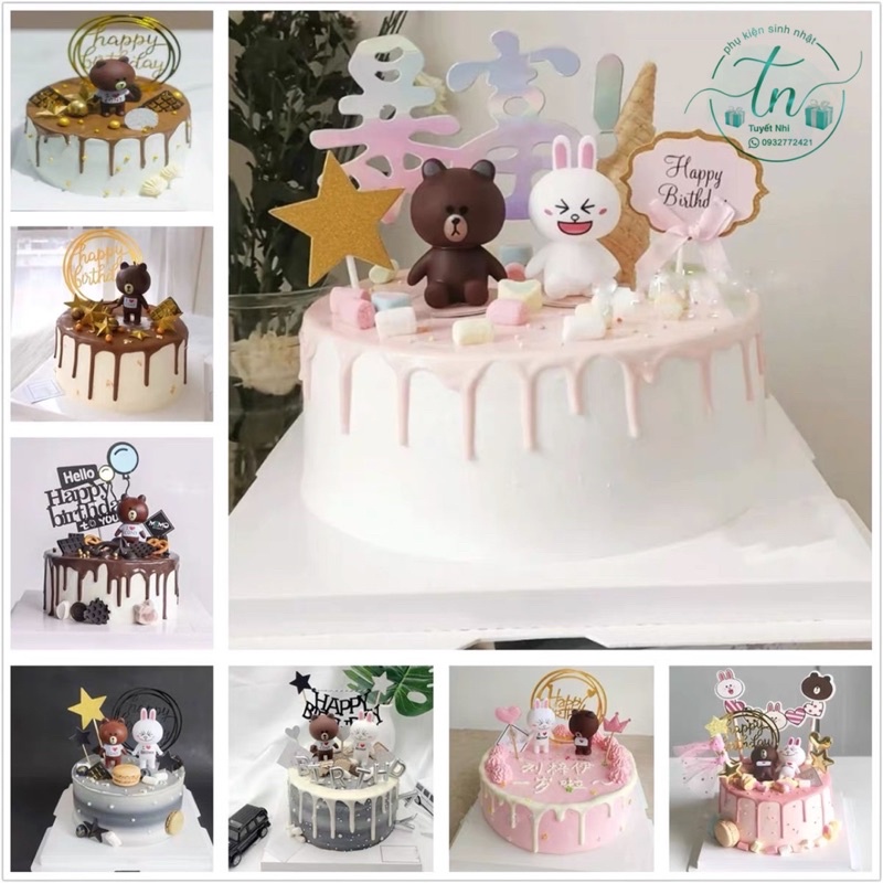 combo 10 gấu thỏ trang trí bánh phụ kiện sinh nhật