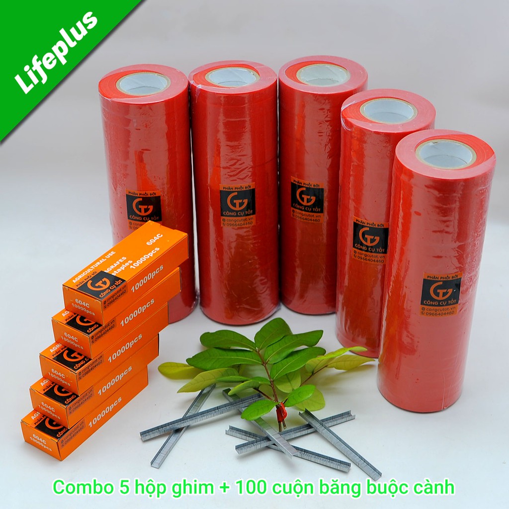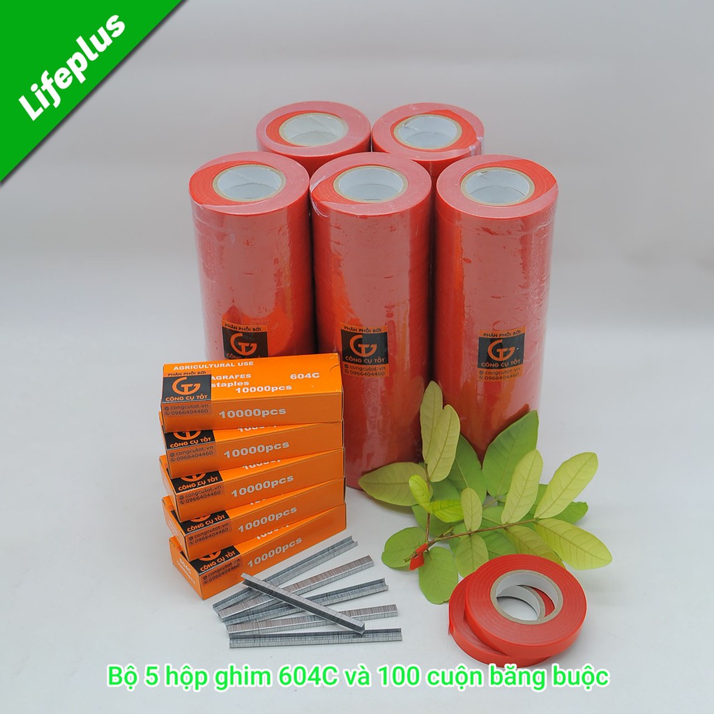 Bộ 100 cuộn băng buộc cành và 5 hộp ghim 604C