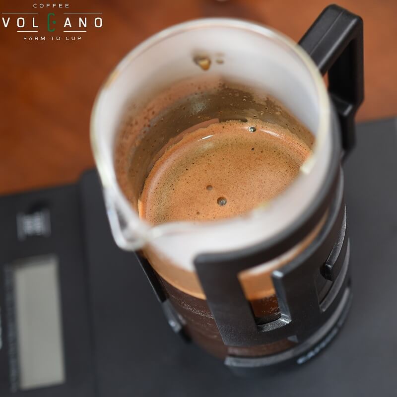 ✅Mở nắp bình French Press, tráng bình và cốc cà phê qua nước sôi để làm nóng.