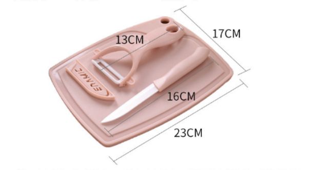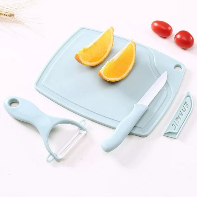 Bộ dao,dao nạo,thớt phủ ceramic 9Chất liệu:nhựa,lưỡi dao được phủ ceramic đảm bảo an toàn cho bé.