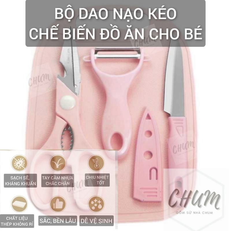Giới thiệu [Mã LIFEHLSALE2 giảm 10% đơn 0Đ] Bộ dao nạo thớt phủ ceramic cho bé tự lập