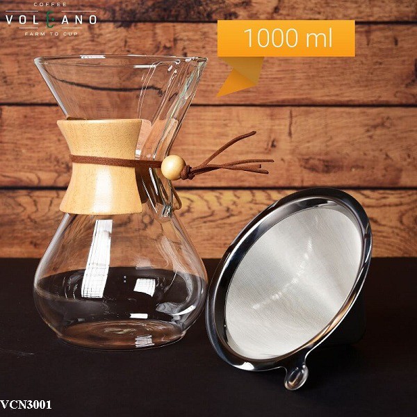 Tên sản phẩm: Bình pha cà phê thủy tinh kiễu chemex tay cầm gỗ- Công ty chịu trách nhiệm về hàng hóa: CÔNG TY TNHH CÀ PHÊ VOLCANO
