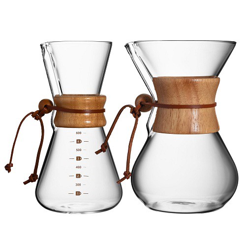 Bình pha cà phê thủy tinh kiễu chemex tay cầm gỗ