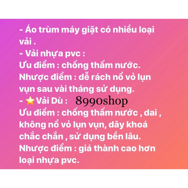 Thông tin sản phẩm : Áo Trùm Máy Giặt Cửa Trên Vải Dù Siêu Bền ( Sỉ Inbox Shop Nhé )🤝🤝🤝 Màu sắc: Giao Màu Ngẫu Nhiên Tuỳ Theo Từng Đợt Hàng Về 🤝🤝🤝