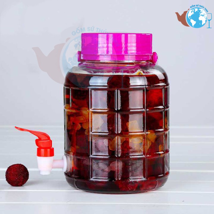 Bình ngâm rượu 3 lít thủy tinh có quai xách - Có Van và không van