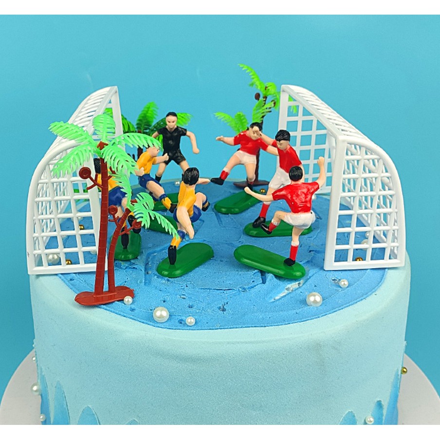 Bộ mô hình cầu thủ bóng đá và cổng, mô hình đội bóng trang trí bánh sinh nhật