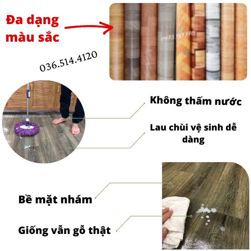 Nhà cửa & Đời sống > Dụng cụ & Thiết bị tiện ích > Mái & sàn || Thảm nhựa lót sàn nhà , simili trải sàn vân gỗ nhám nhiều mầuCòn hàng