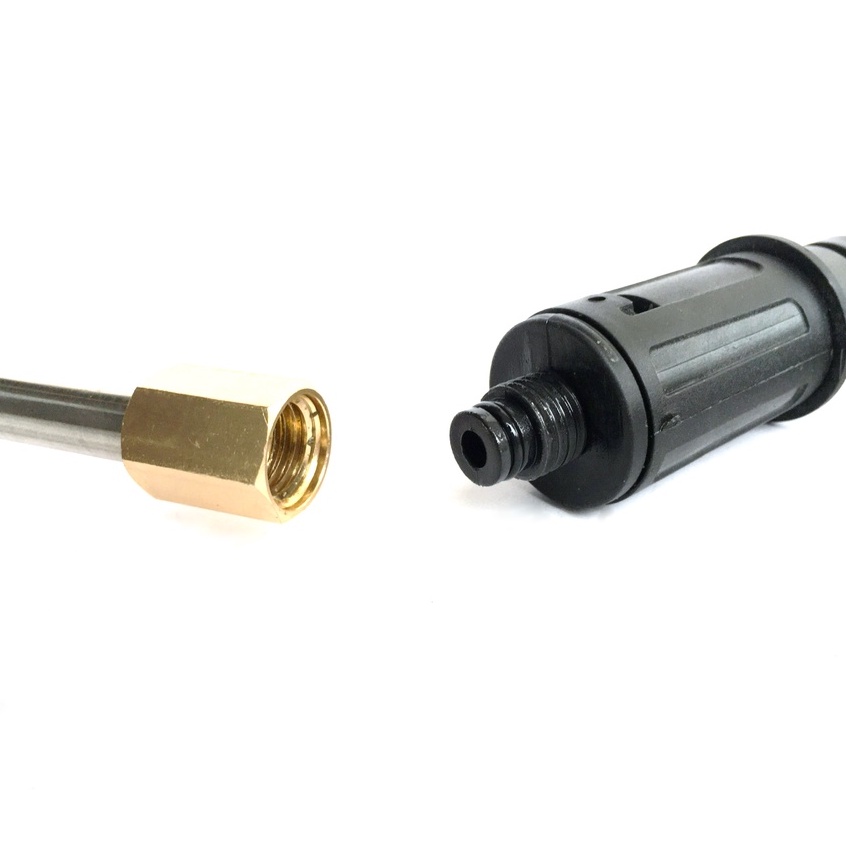 - Ống nối dài có chiều dài lên tới 30cm giúp bạn dễ dàng luôn sâu vào các vị trí khó với tới & tạo 1 khoảng cách nhất định giữa người sử dụng máy bơm xịt rửa xe với vật cần rửa để tránh bắn nước & đảm bảo an toàn hơn.