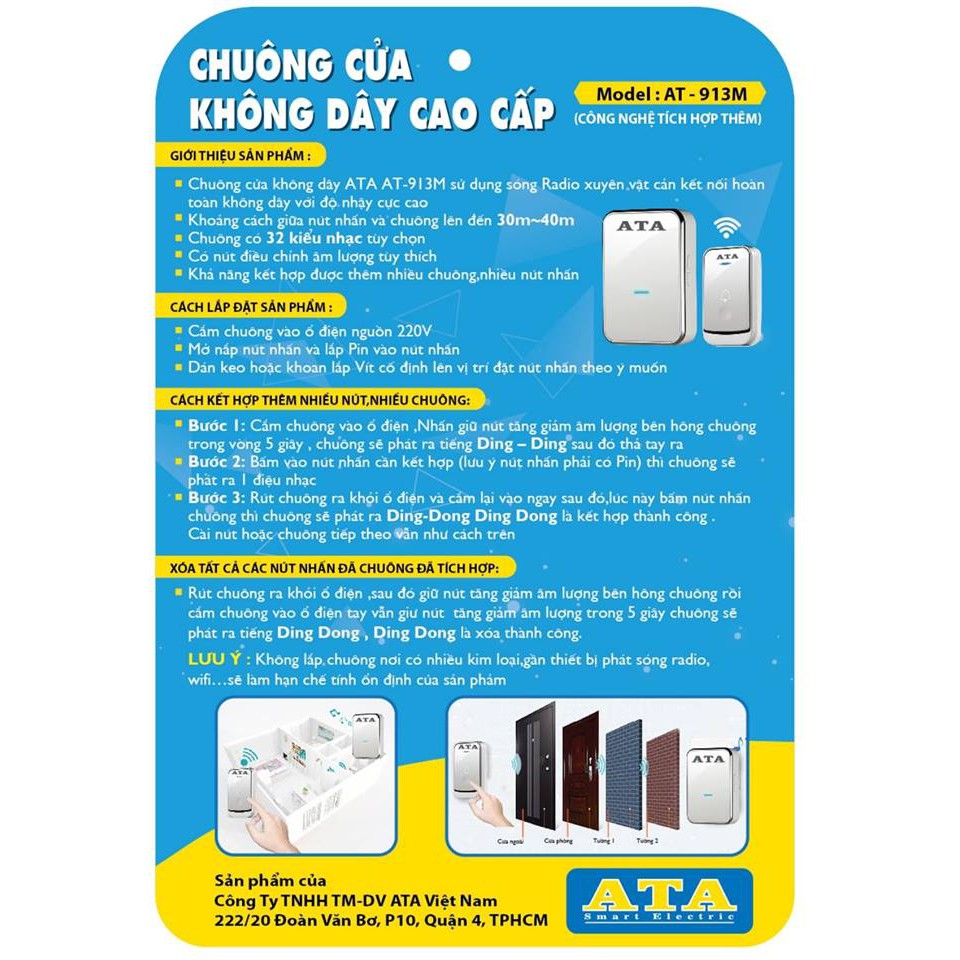 Tên sản phẩm: Chuông cửa không dây cao cấp AT 913M