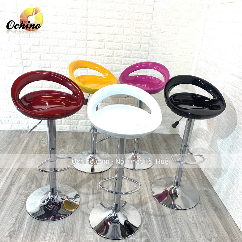 Ghế Trang Điểm, Ghế Bar Nhựa Khoét Lỗ xoay 360 và nâng lên hạ xuống 60/80cm (Đủ Màu)