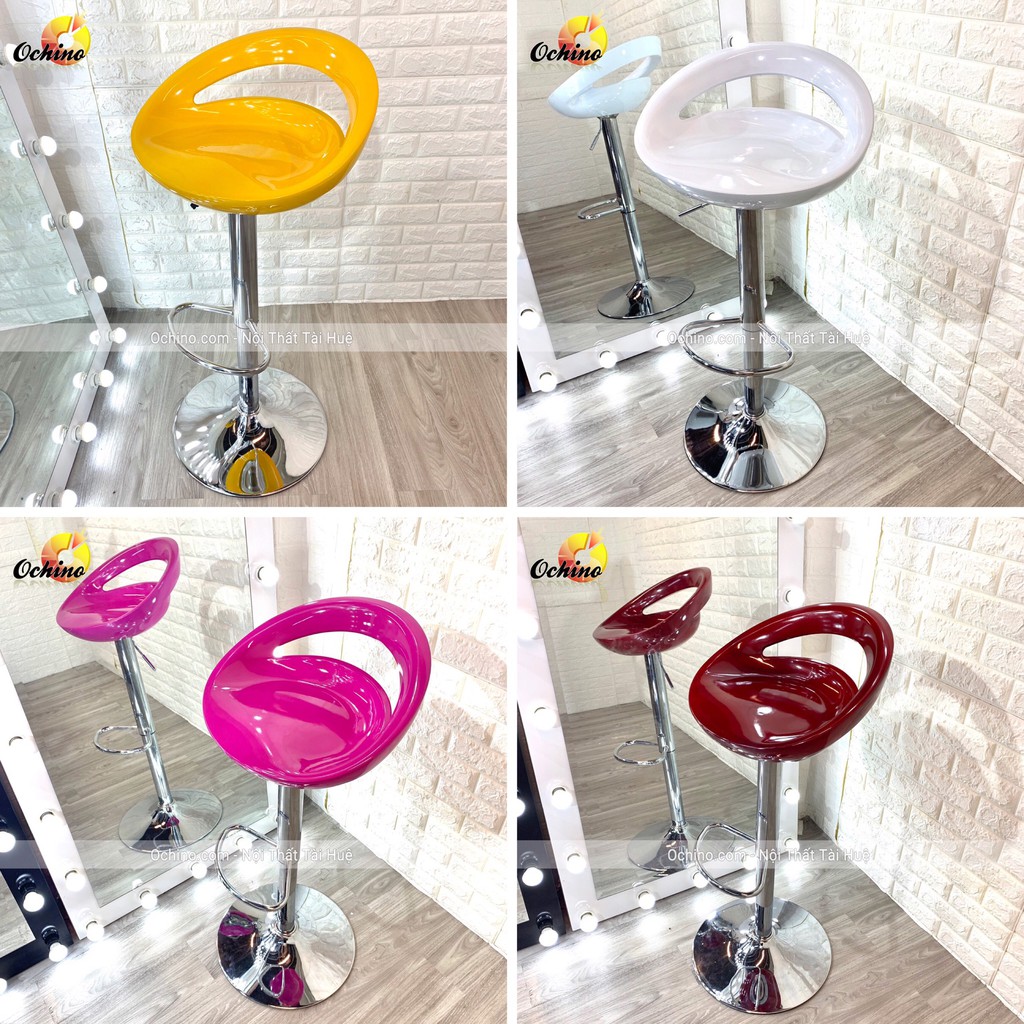Giới thiệu Ghế Trang Điểm, Ghế Bar Nhựa Khoét Lỗ xoay 360 và nâng lên hạ xuống 60/80cm (Đủ Màu)