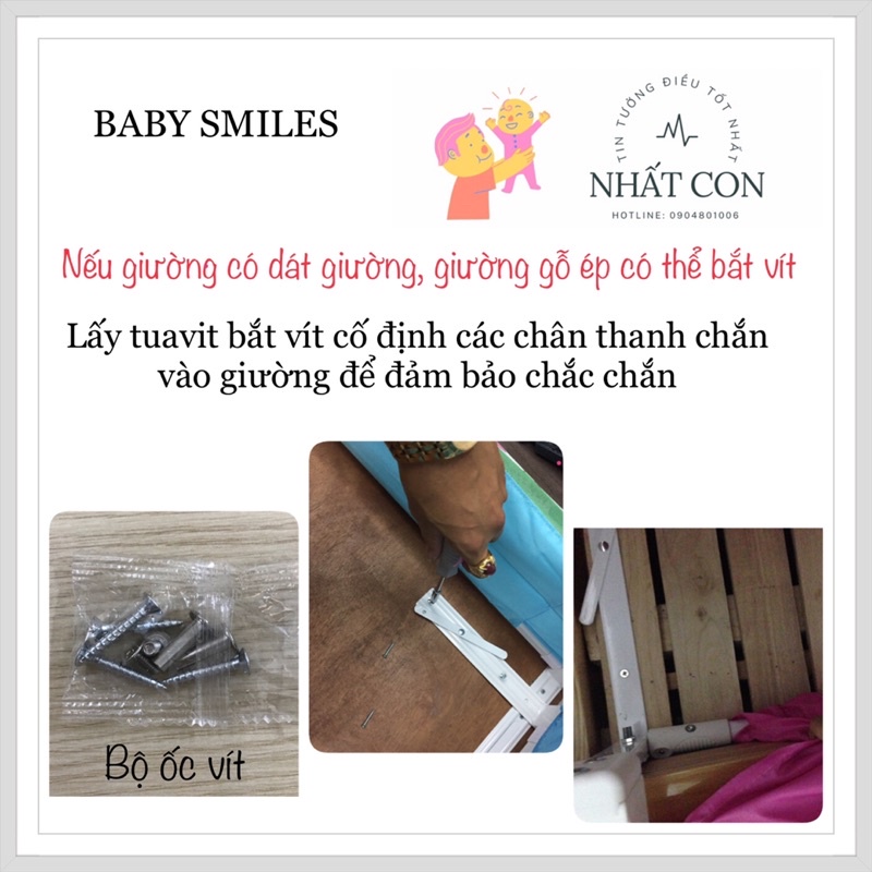 (ĐỦ SIZE) Thanh Chắn Giường Baby Smiles độ cao 62-82cm