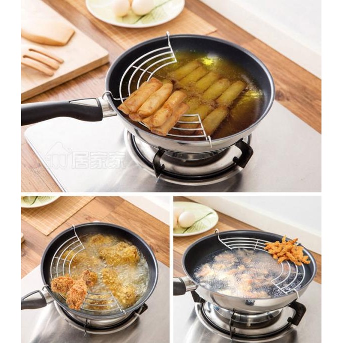 Nhà cửa & Đời sống > Dụng cụ nhà bếp > Chảo || Vỉ gác chảo chiên rán ráo dầu mỡ inox 28cmCòn hàng