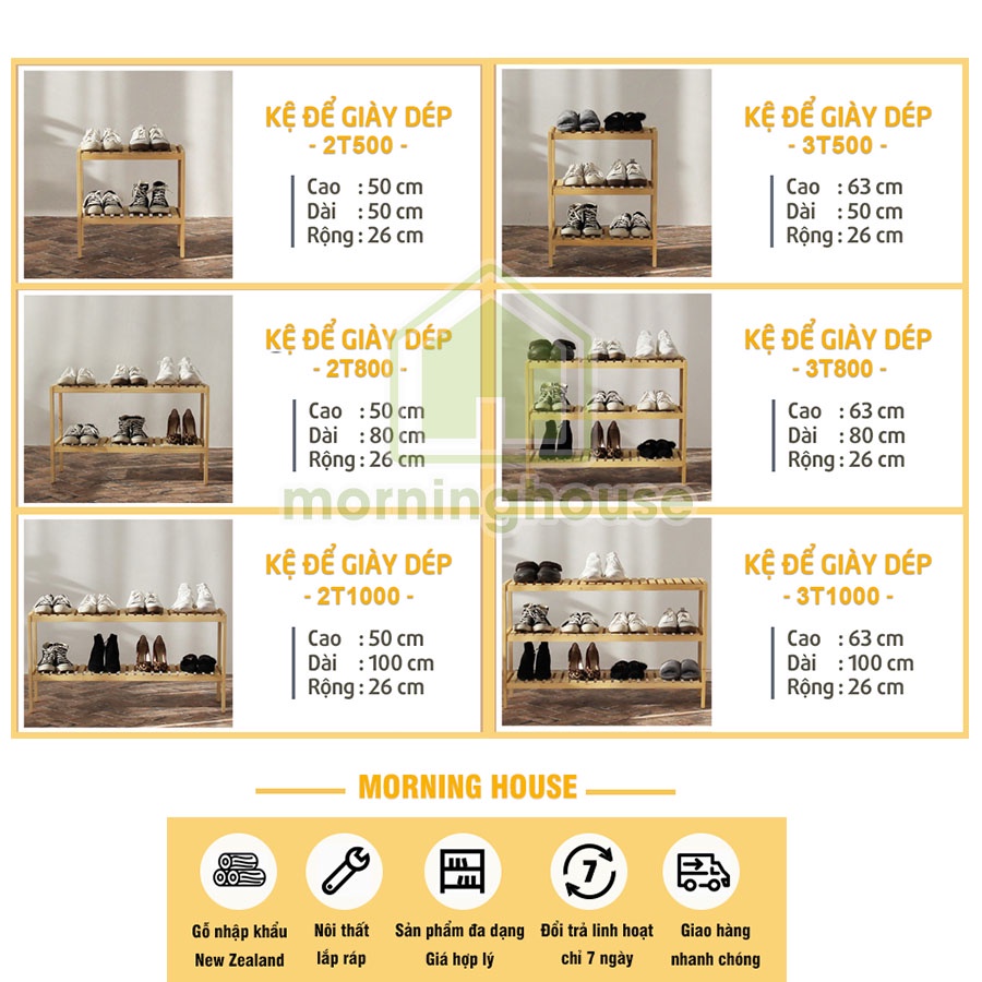 Giới thiệu [Mã LIFEBKM1 giảm 10% tối đa 1 triệu đơn từ 500k] Kệ Giày Dép Gỗ Morning House- Dài 80cm - 2T800