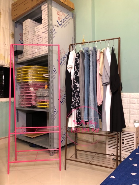 K Kệ treo quần áo chữ A, với thiết kế 2 tầng đựng 1 tầng treo với chất liệu bằng sắt đặc rất cứng cáp và có thể đựng được rất nhiều đồChất liệu sắt sơn tĩnh điện, với hai màu : Hồng và Trắng.