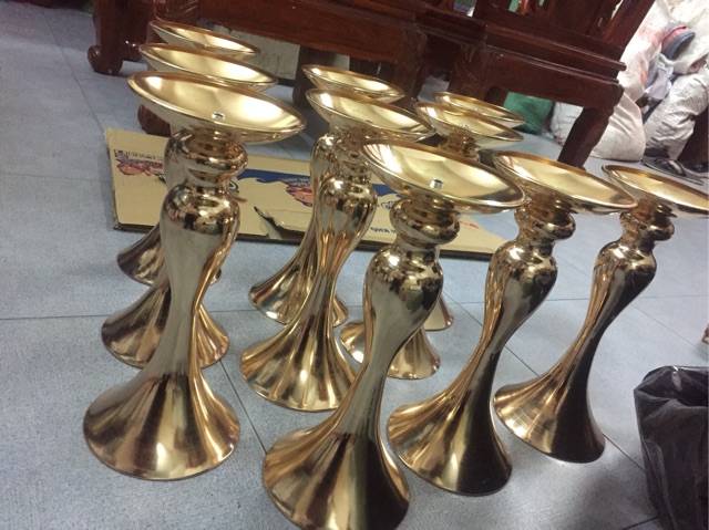 Sản phẩm được shop dùng đi trang trí rất nhiều rồi nha . Chân nến đuôi cá được làm bằng hợp kim , mạ vàng công nghệ pvd bền mầu , hàng luôn có sẵn nhé .