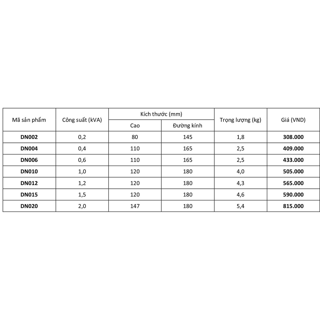 Giới thiệu Biến áp đổi nguồn LIOA 1000/1200/1500/2000VA (nguồn vào 220V / nguồn ra 100-120V)