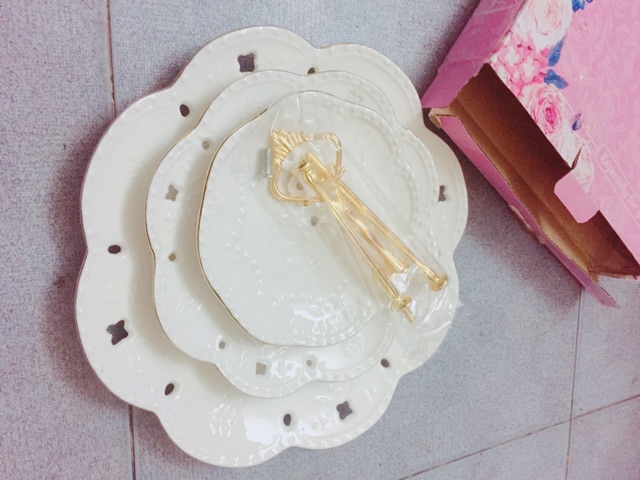 Khay sứ ba tầng pancake đựng bánh và hoa quả