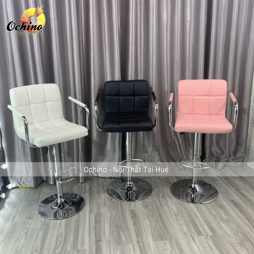 Ghế Bar, Ghế Makeup Vịn Tay Inox Bằng Da Cao Cấp ( Đủ Màu)