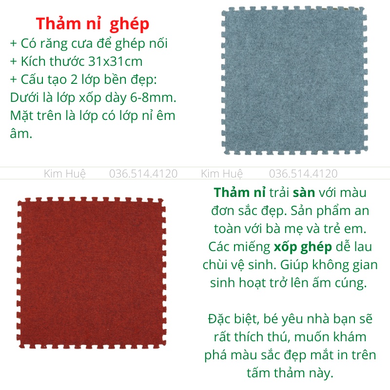 Thảm nỉ ghép trải sàn 31x31cm cho bé trải phòng khách hàng việt nam dày đẹp (1 tấm)