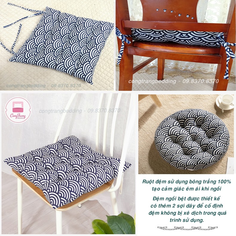 - Chất Liệu : Vỏ ngoài được làm bằng vải dày dặn, bên trong 100% bông tinh khiết tạo cảm giác êm ái khi ngồi