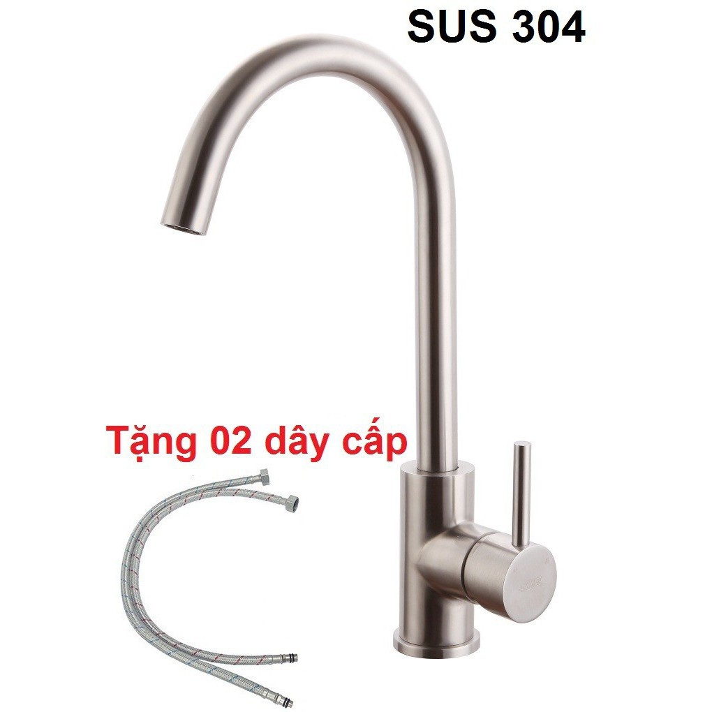 Vòi Rửa Bát,Vòi Rửa Chén Nóng Lạnh Inox 304 Cần Cứng Xoay 360- Tặng 2 dây cấp nước