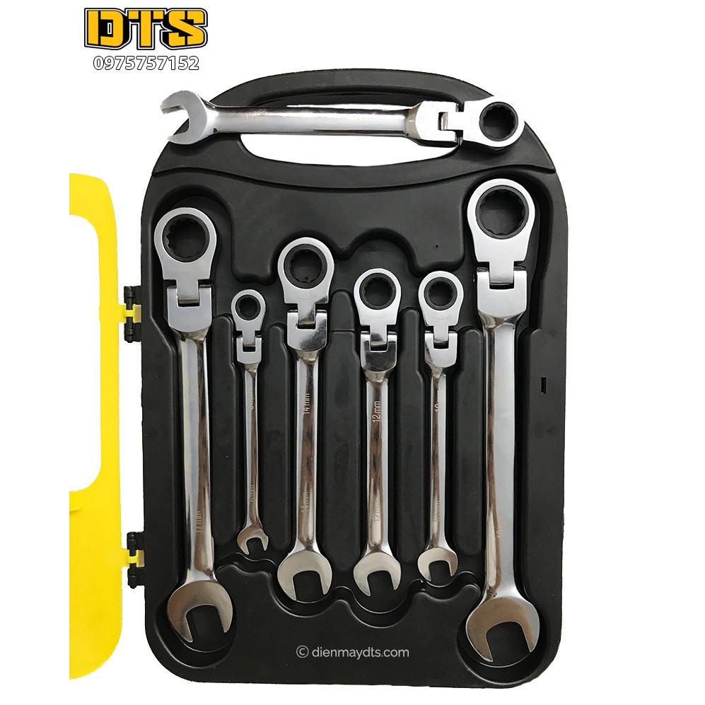 Nếu bạn là một thợ sửa chữa các thiết bị máy móc, điện tử chuyên nghiệp hay thường xuyên sửa chữa những vật dụng trong nhà thì chắc hẳn một bộ cờ lê vòng miệng nhỏ gọn, bền bỉ, tiện lợi, chất lượng cao là dụng cụ vô cùng cần thiết. Bộ cờ lê gật gù 7 chi tiết cao cấp 8-19mm là sự lựa chọn thông minh của bạn để đáp ứng đầy đủ các tiêu chí trên.Bộ cờ lê gật gù 7 chi tiết cao cấp bao gồm: